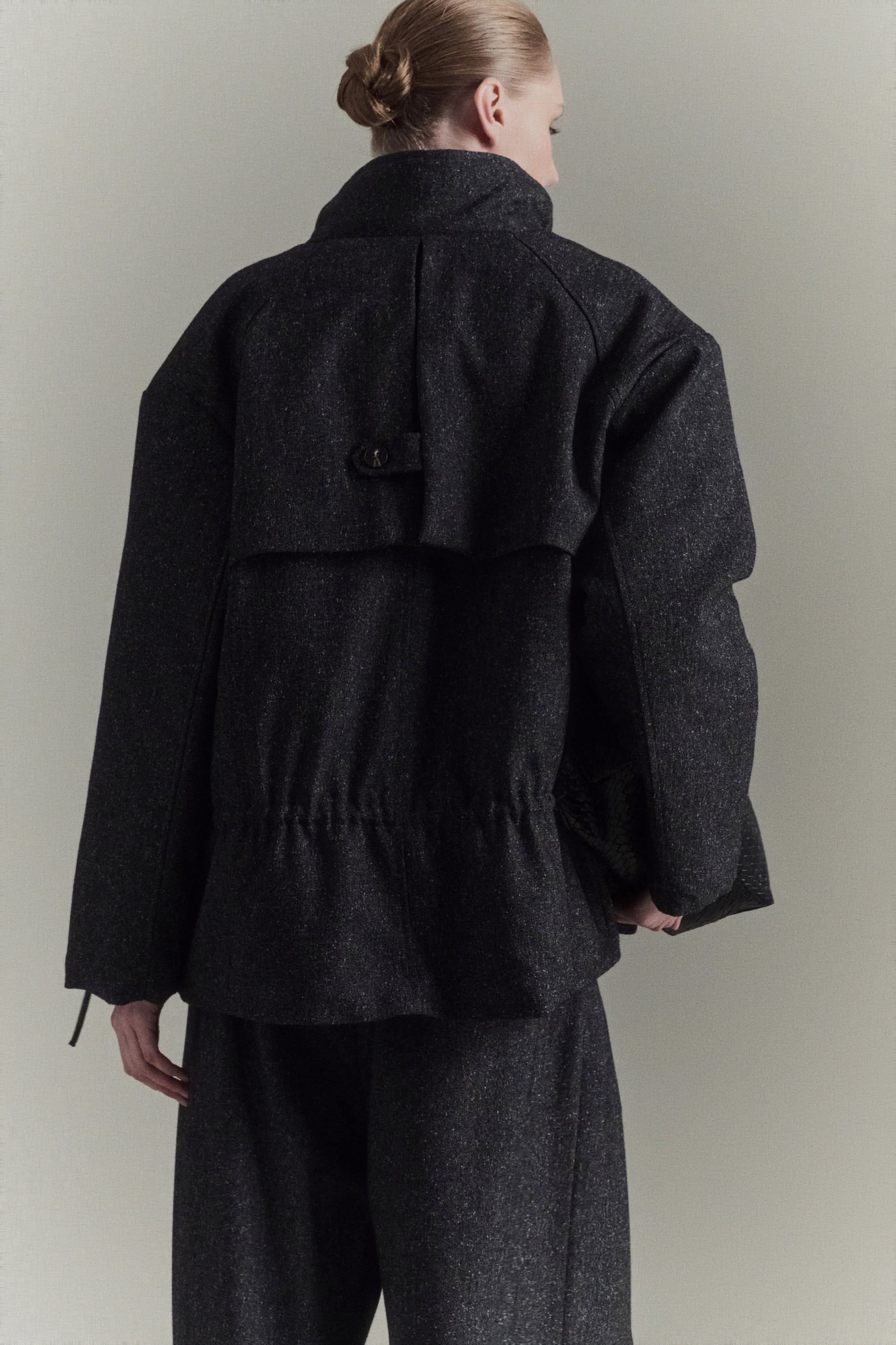 Chaqueta de mezcla de tejidos. Capucha y bolsillos delanteros. Cierre frontal con botones ocultos. Cinturón ajustable. Detalle de pelo sintético en el interior. Corte regular, disponible en talla única.