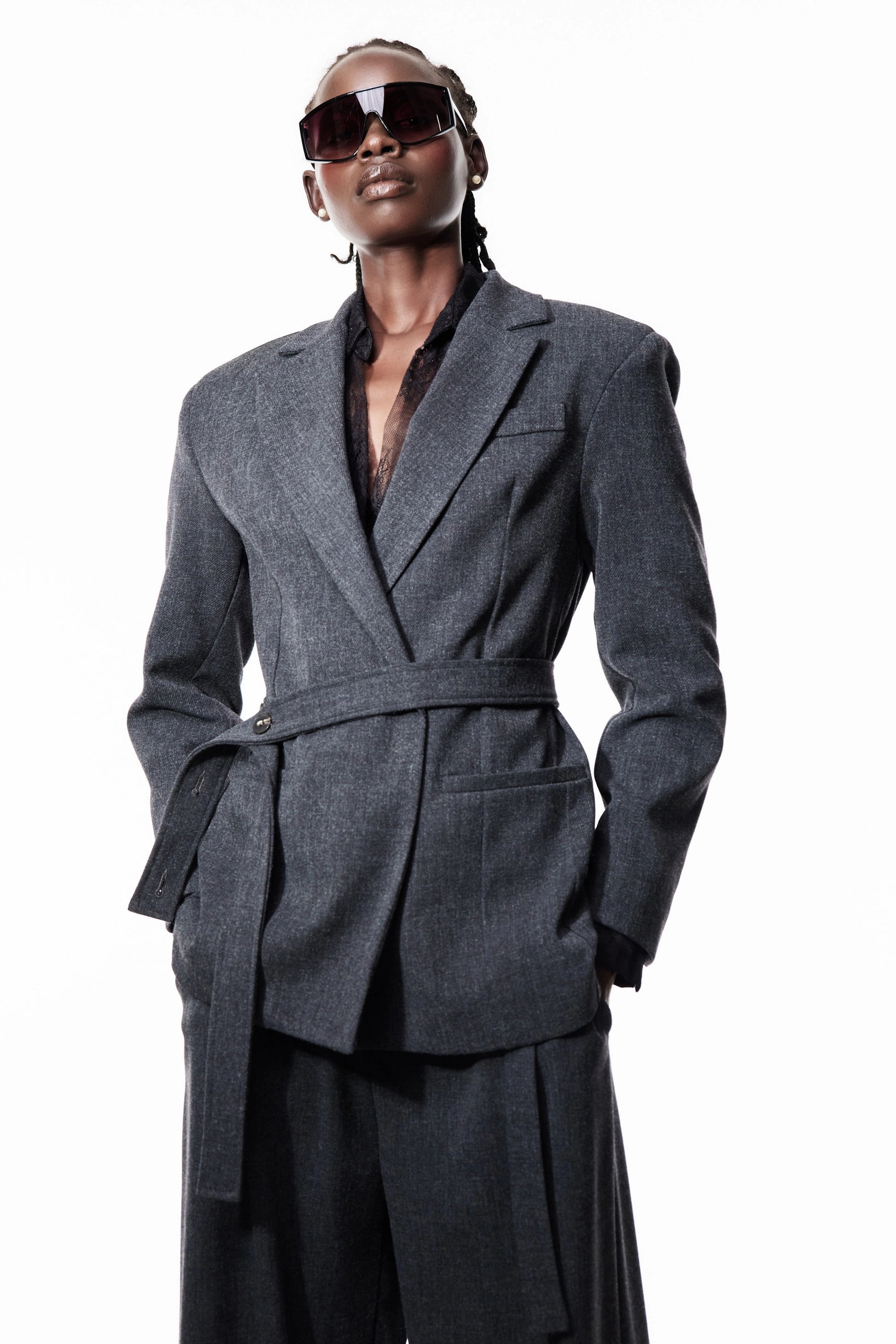 Chaqueta oversize de mezcla de lana con hombreras. Mangas largas. Solapas y dos bolsillos delanteros con solapa. Detalle de hilo en contraste. Cierre sencillo con botones. Forro completo. Talla s/m, m/l.
