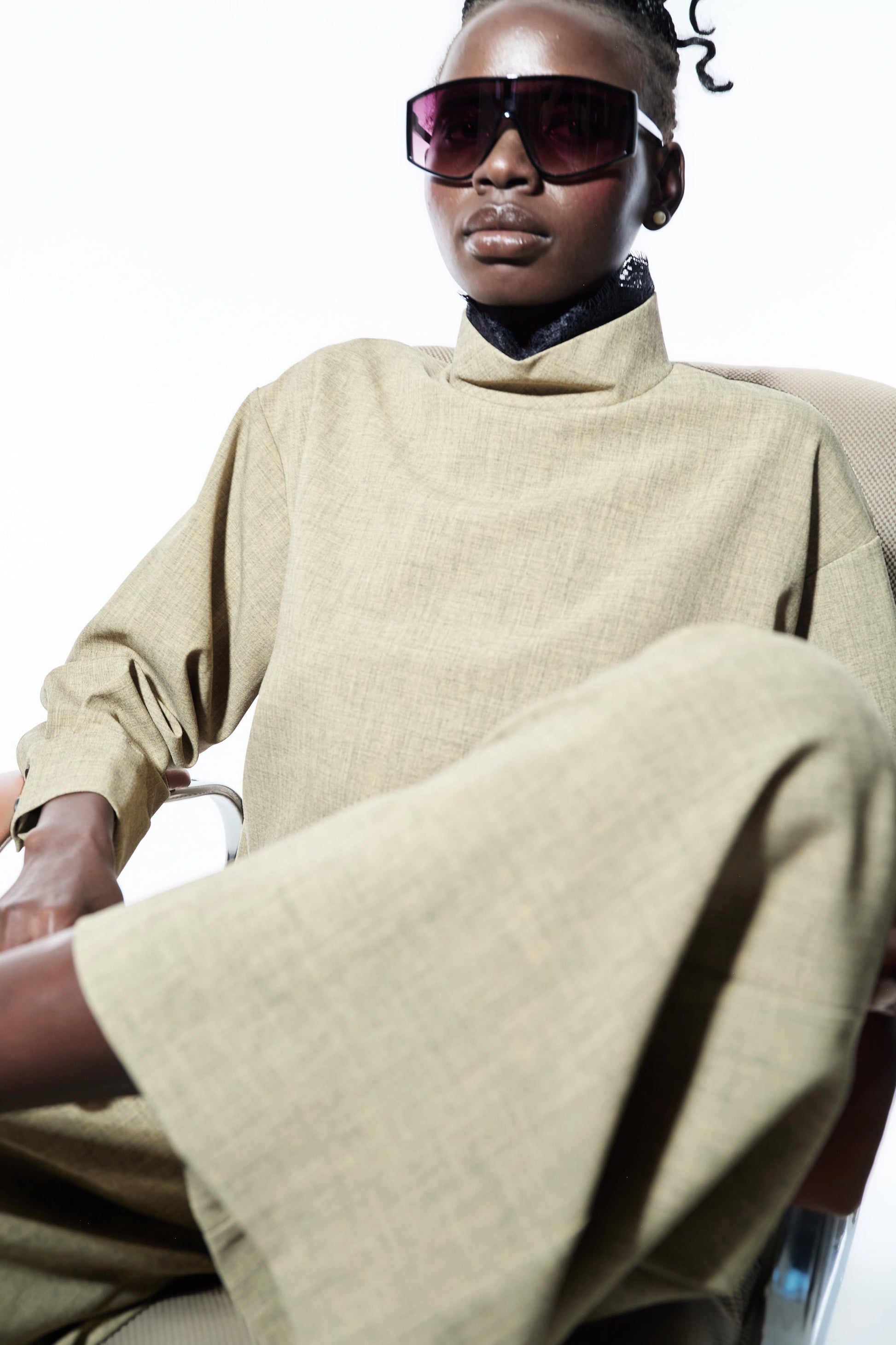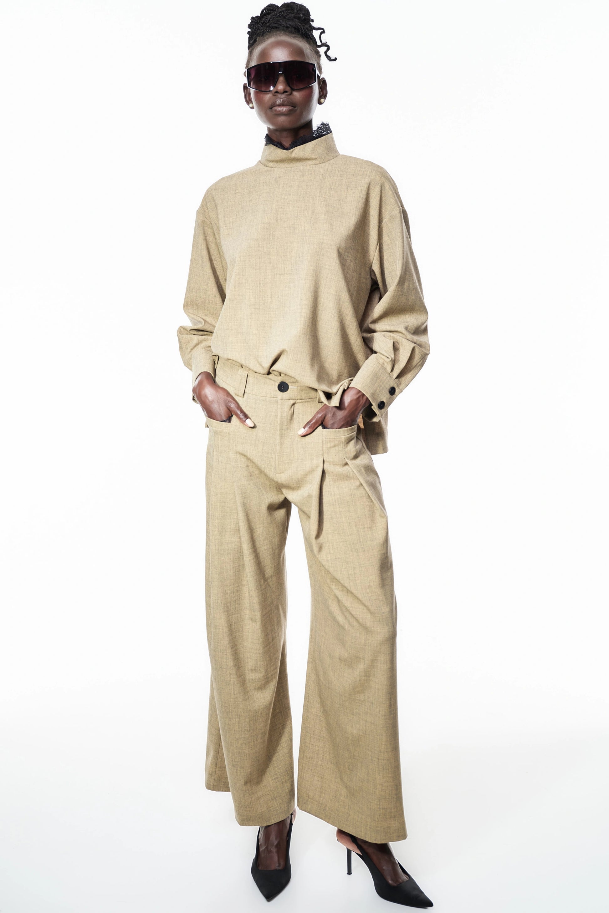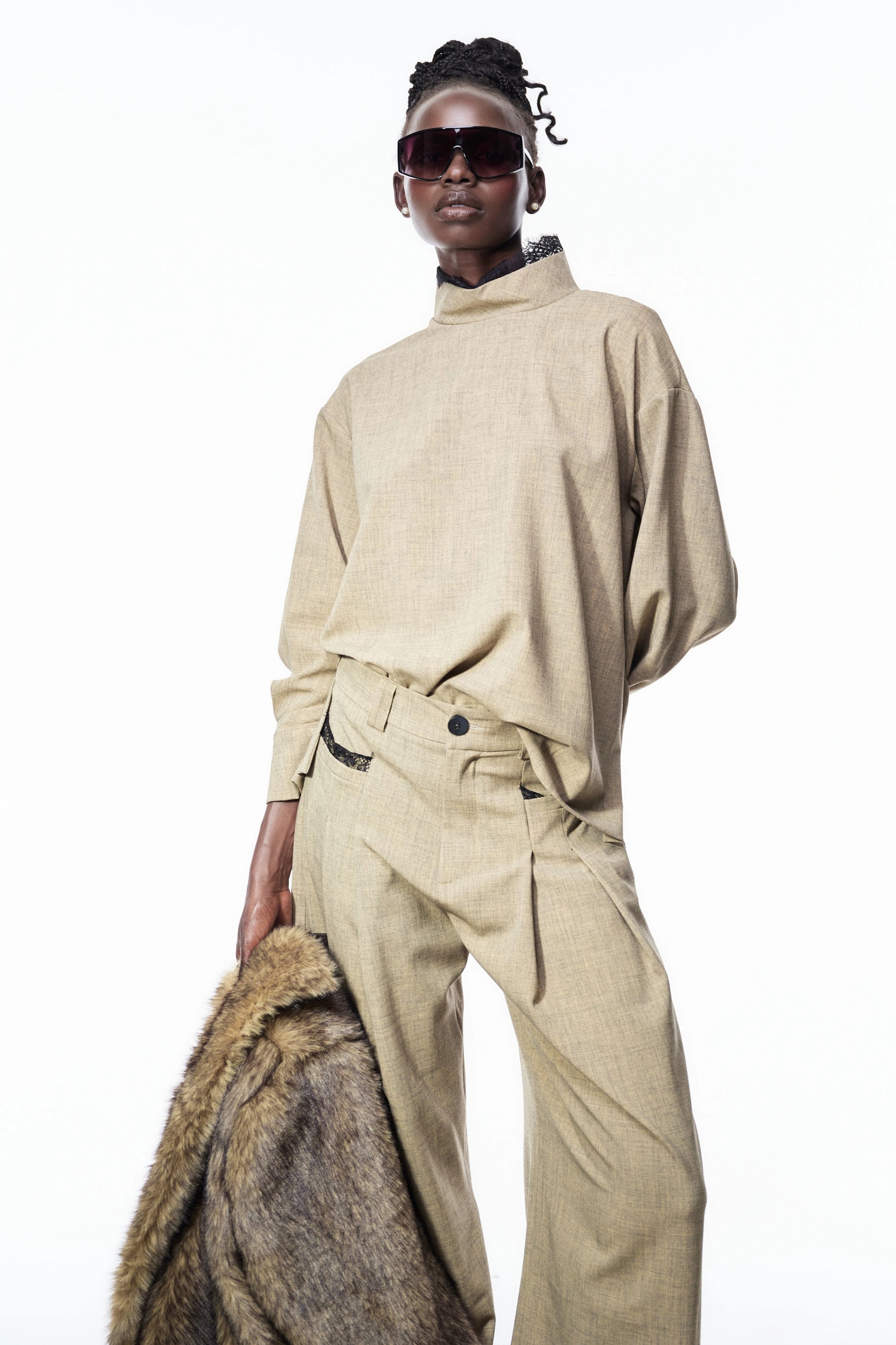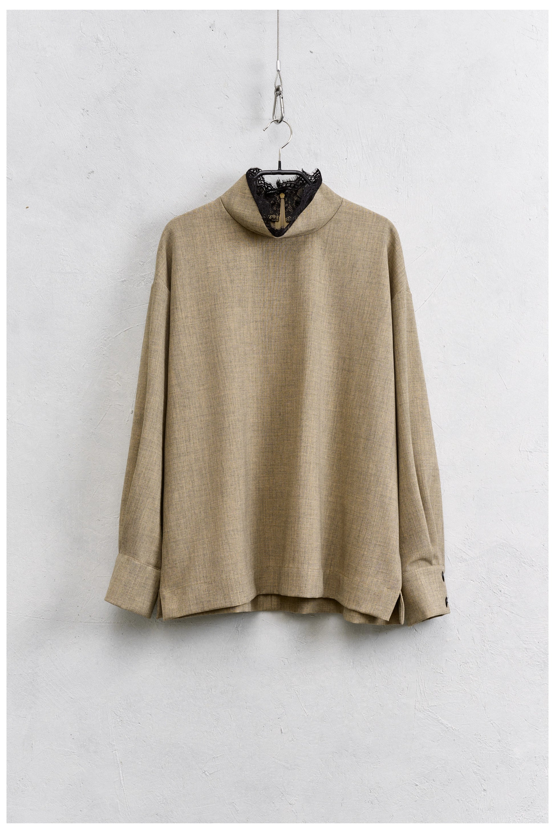 Blusa de escote pronunciado. Detalle de encaje en el cuello. Mangas abotonadas. Cierre de cremallera en la espalda. Aberturas laterales. Corte regular, disponible en tallas S/M y M/L.