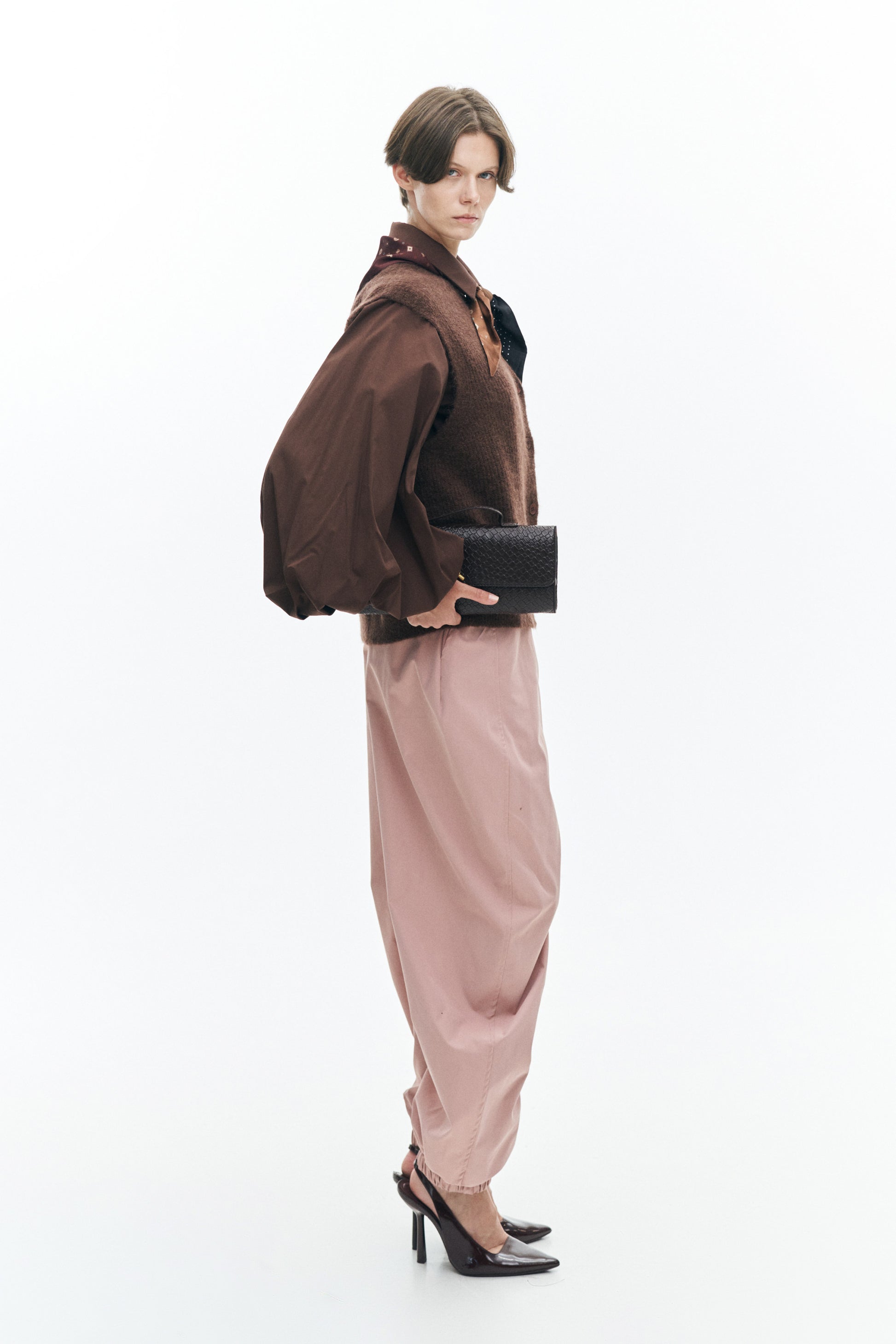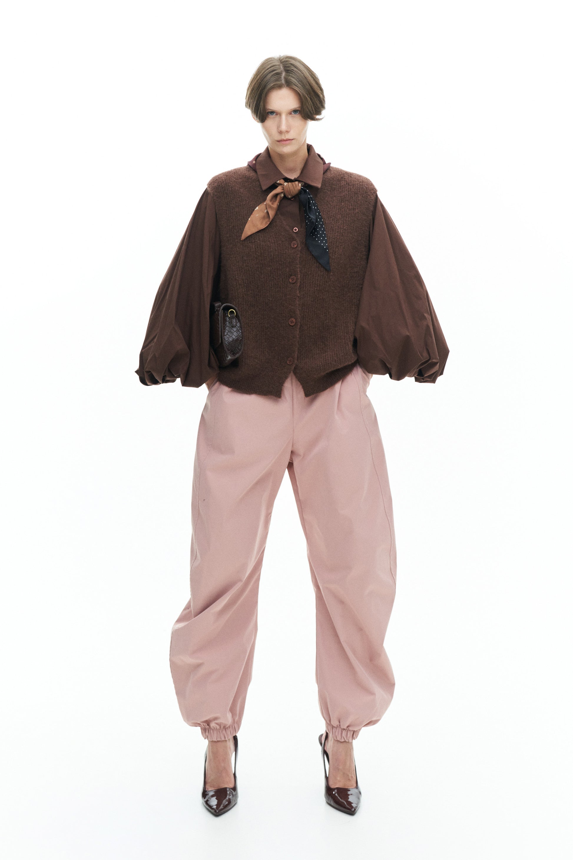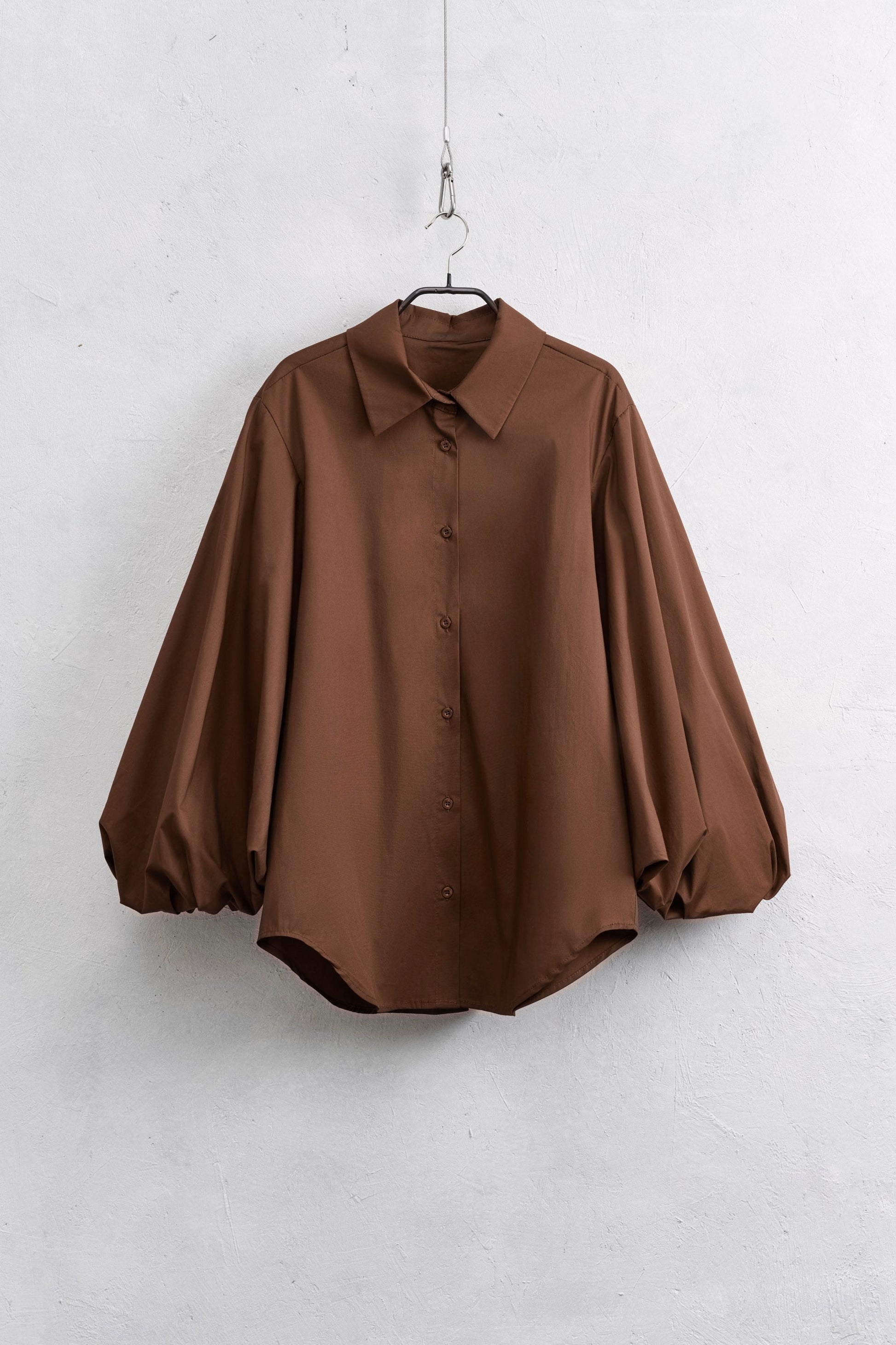 Camisa de algodón con cuello en punta. Mangas largas abullonadas y cierre de botones. Corte regular, disponible en tallas S/M y M/L.