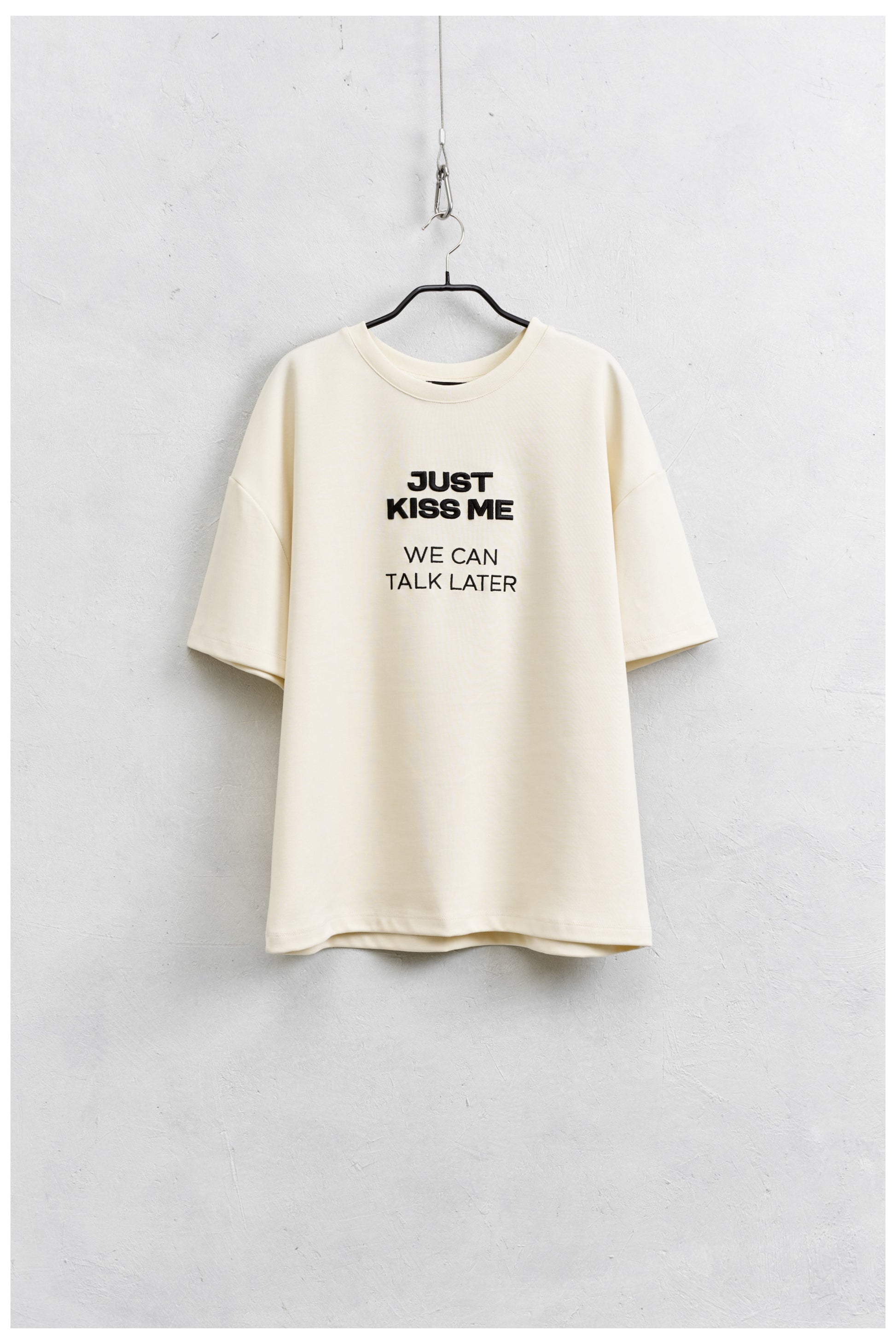 Camiseta de algodón con estampado bordado y escote redondo. Mangas cortas. Línea recta. Ajuste suave, disponible en talla ÚNICA