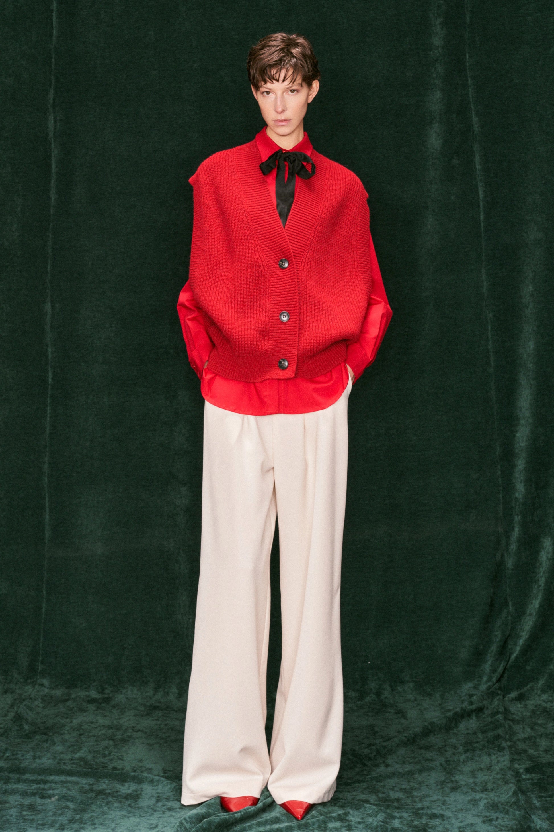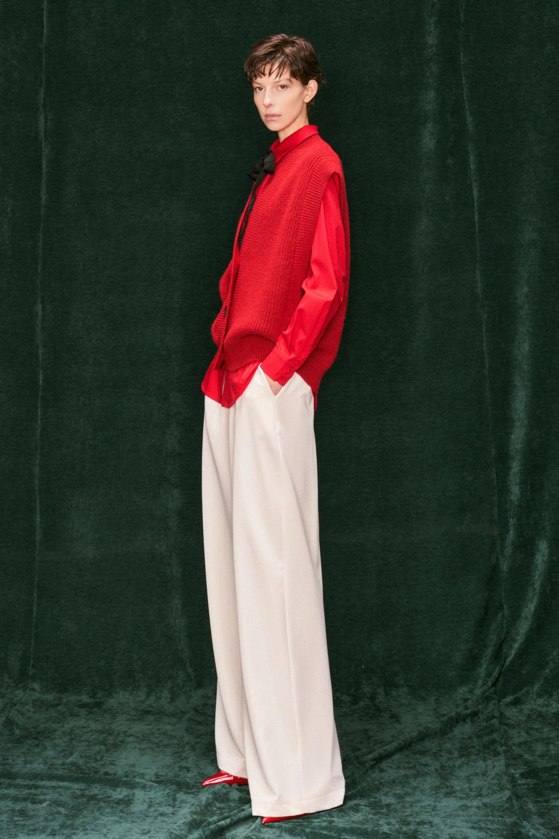 Chaleco en mezcla de lana con cuello en pico. Cierre central con botones. Ajuste suave. Disponible en talla única.