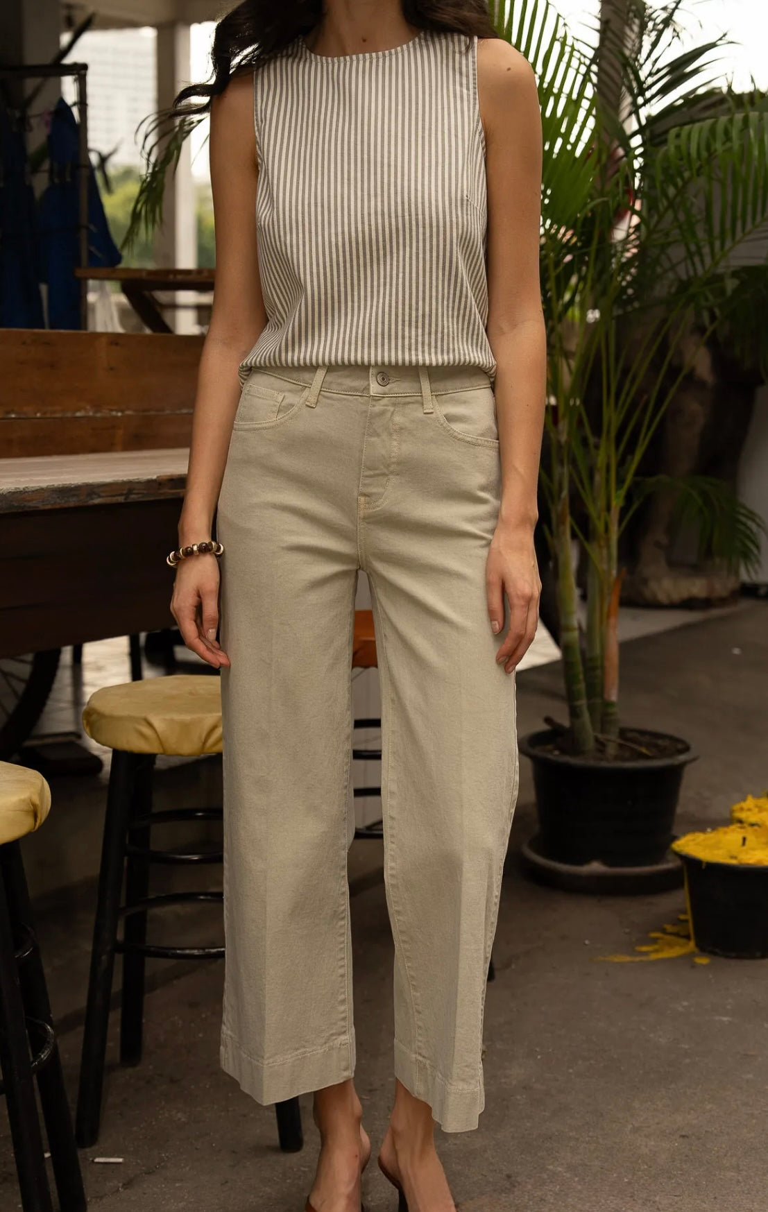 Jeans de tiro alto y cinco bolsillos. Pierna ancha extra larga. Cierre con cremallera y botón metálico.