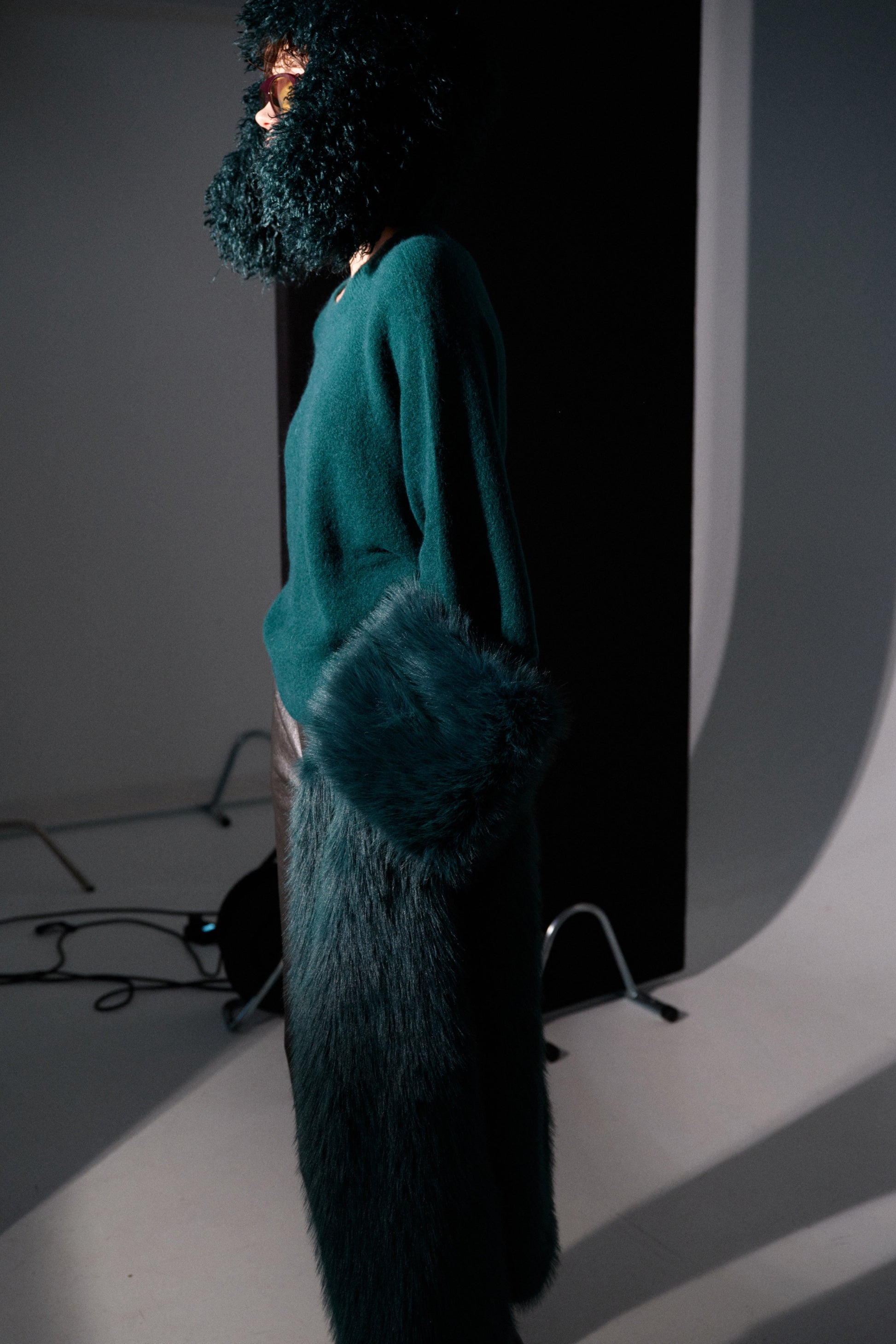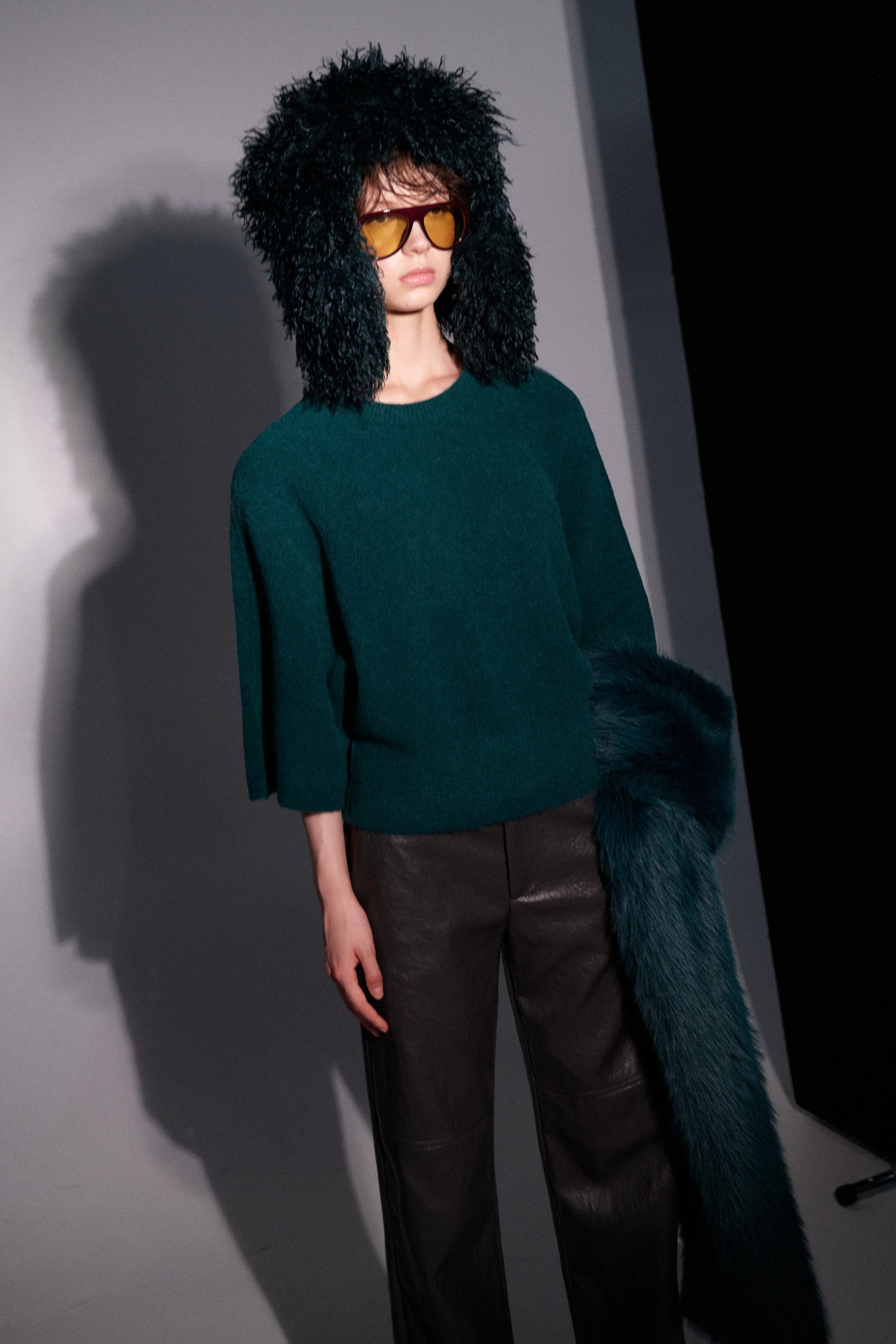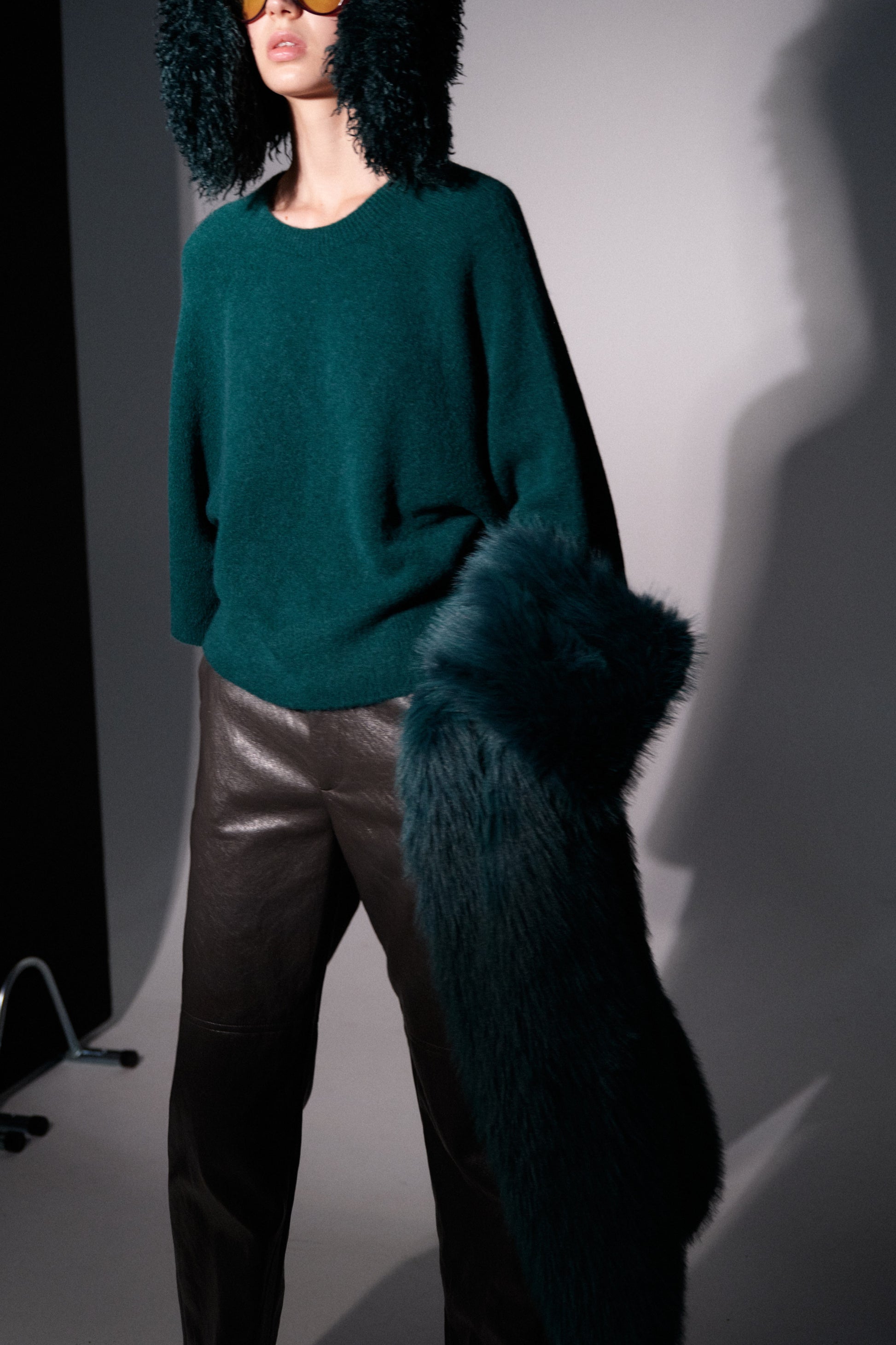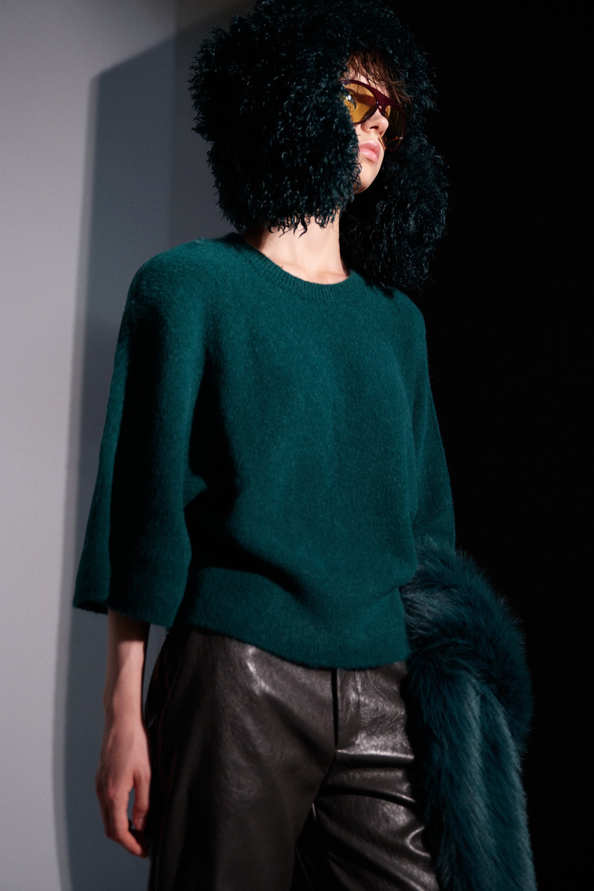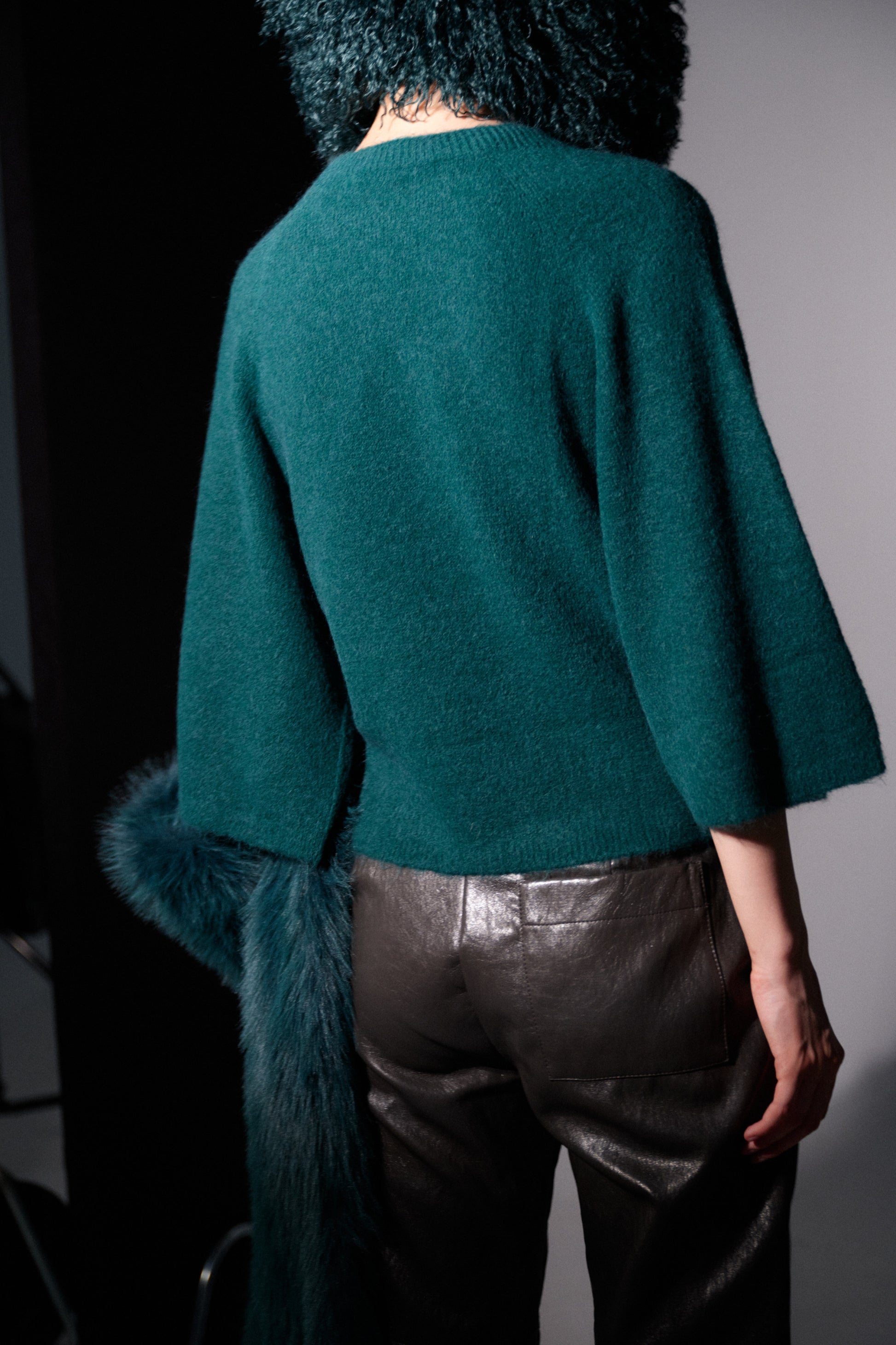 Suéter de cuello redondo. Mangas tres cuartos. Corte holgado. Talla única.