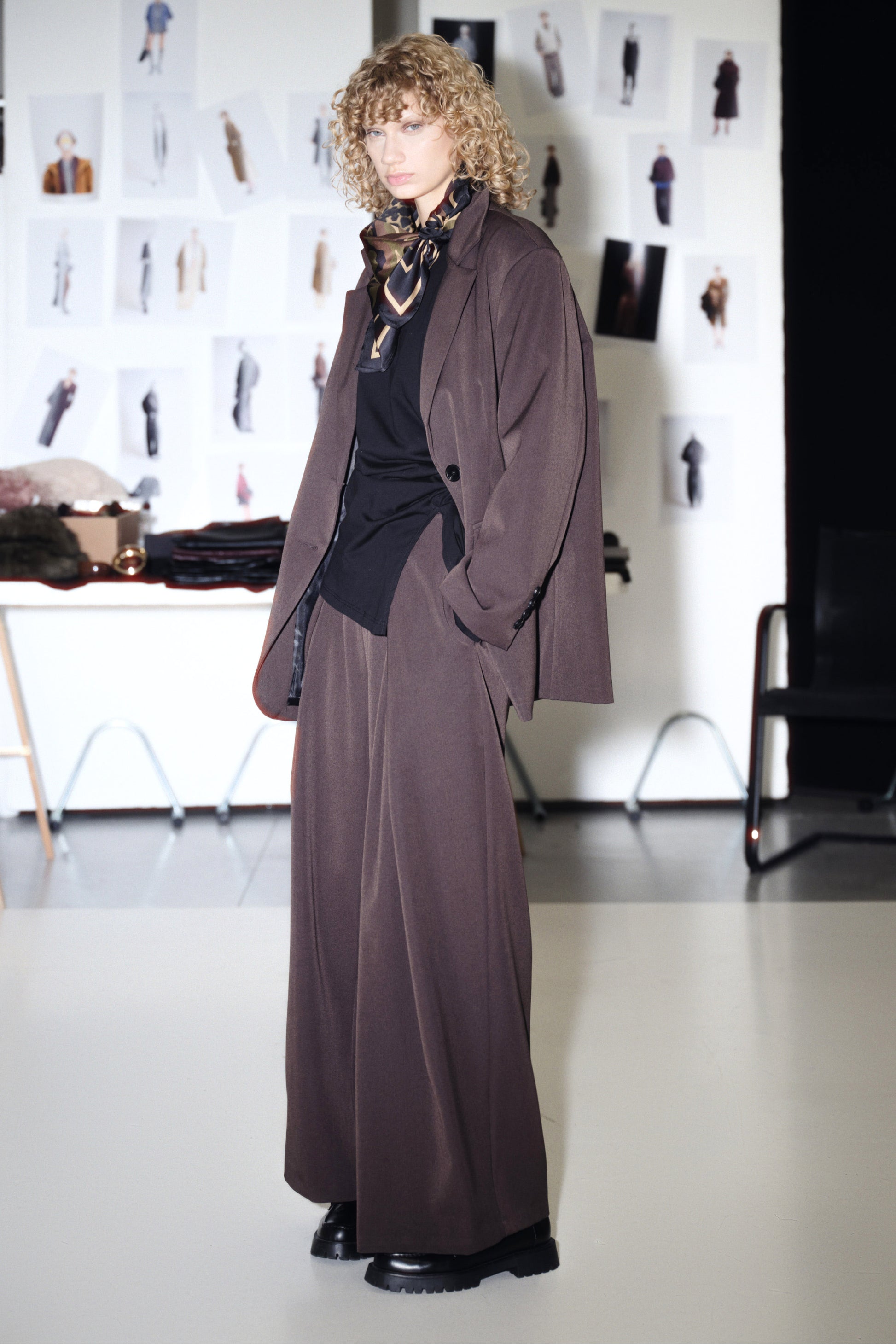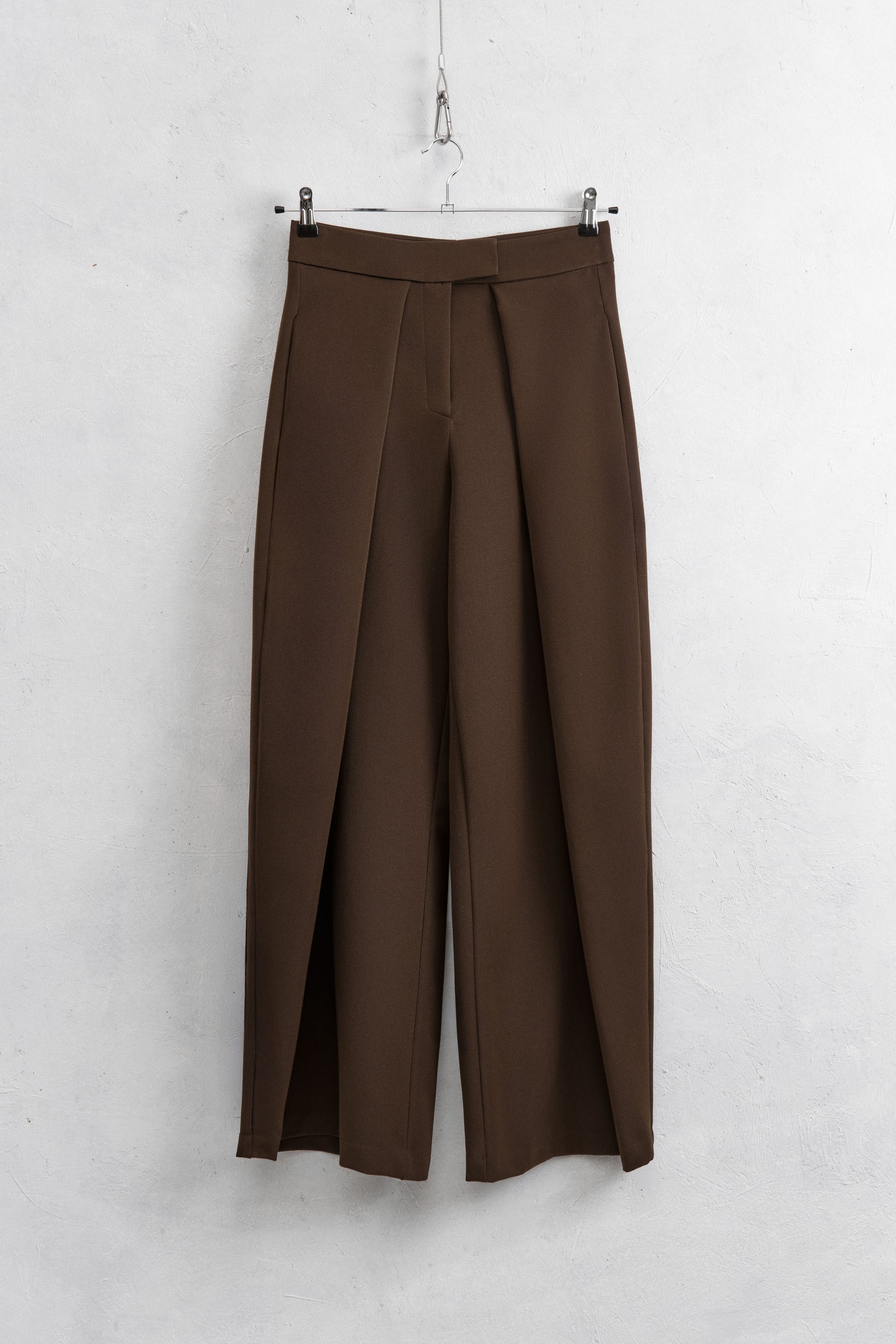 Pantalón de traje en mezcla de viscosa. Detalle de pinzas delanteras. Cierre frontal con cremallera y gancho. Bolsillos laterales ocultos en la costura. Corte regular, disponible en tallas S/M/L.